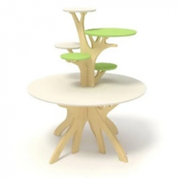 Материал изделия: фанера. Покрытие: лак, эмаль. Над столешницей наличие открытых полок для размещения игрового и дидактического материала.