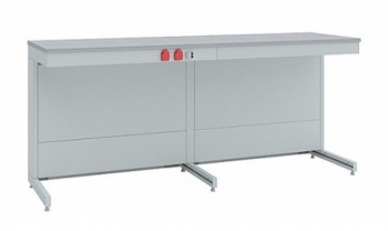 Вид материала столешницы: CPL. Количество встроенных розеток: 2 шт. Наличие автомата аварийного отключения тока. Тип каркаса: металлический. Декоративные панели выполнены из листовой стали. Опоры регулируемые.