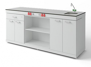 Вид материала столешницы: Lab HPL. Количество водопроводных кранов: 1 шт. Наличие раковины. Количество встроенных тумб: 1шт. Тип каркаса: металлический. Декоративные панели выполнены из листовой стали. Материал крана: латунь с эпоксидным покрытием. Материал раковины: полипропилен. Опоры регулируемые. Материал встроенной тумбы: ЛДСП толщиной 16 мм. Кромка: ПВХ, толщиной 2 и 0,4 мм.