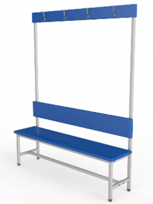 Скамья с крючками. Каркас: металлокаркас 25х25 мм, порошковая окраска. Сиденье, спинка и верхний элемент: ЛДСП 16 мм, кромка ПВХ 2 мм. Крючки: двухрожковые металлические усиленные. Количество крючков: 6 шт.